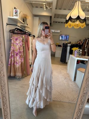 VESTIDO LARGO TAUPE CON CINTO
