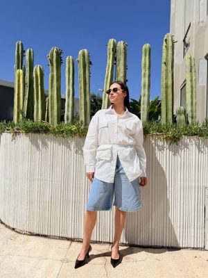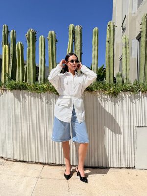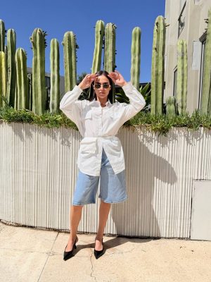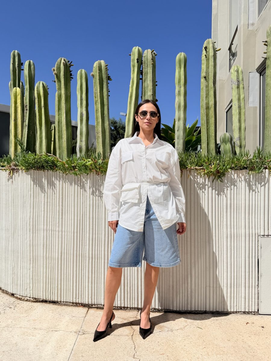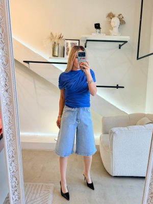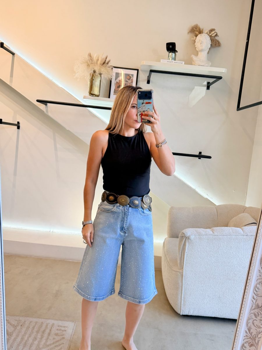 Bermuda tela de mezclilla cubierta de brillos