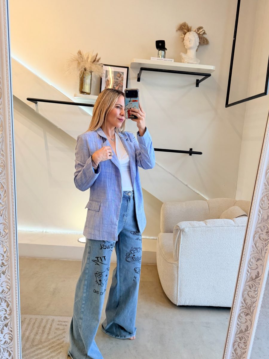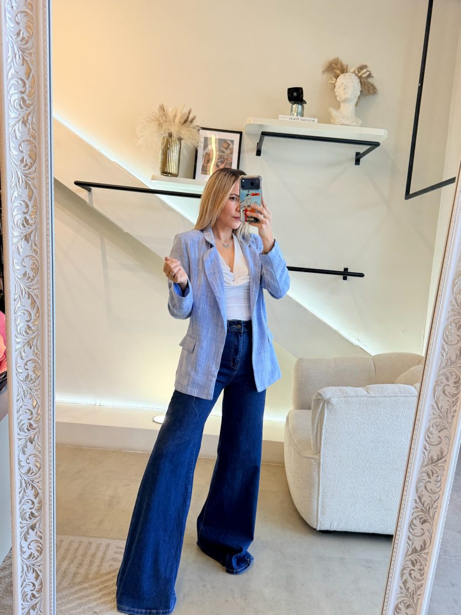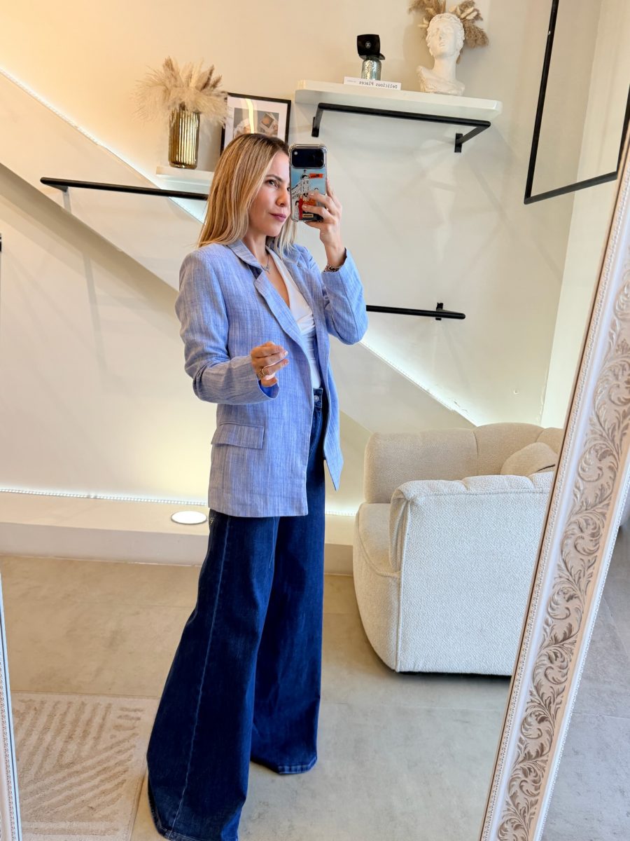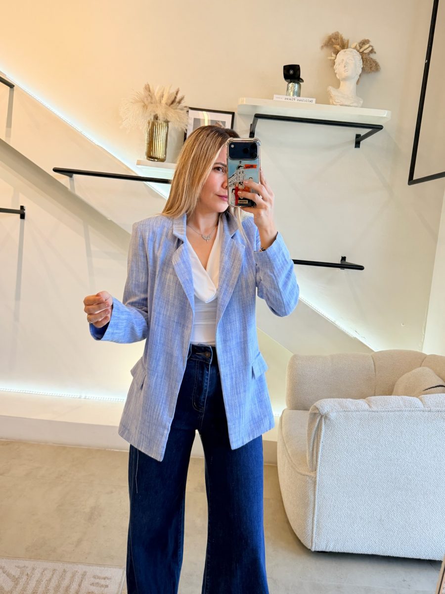 Blazer azul efecto lino