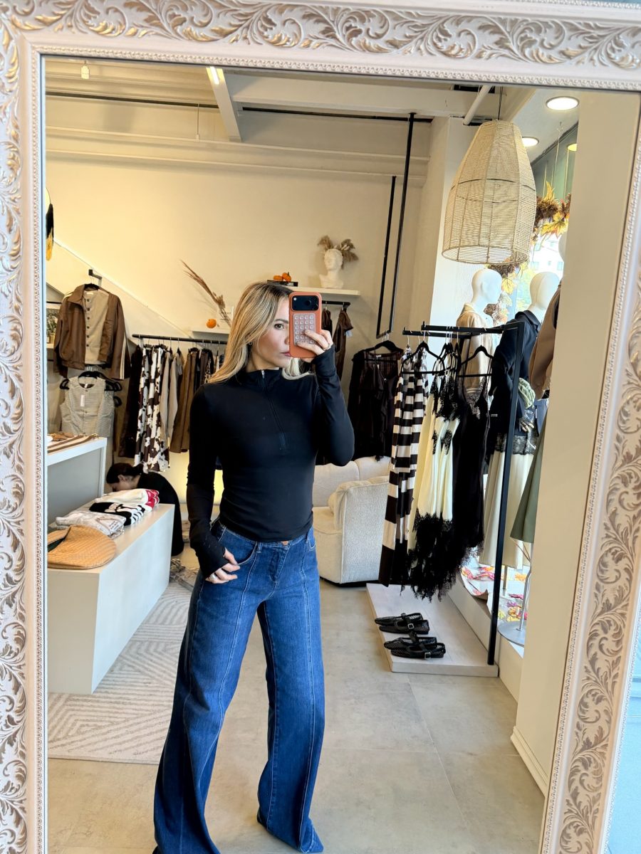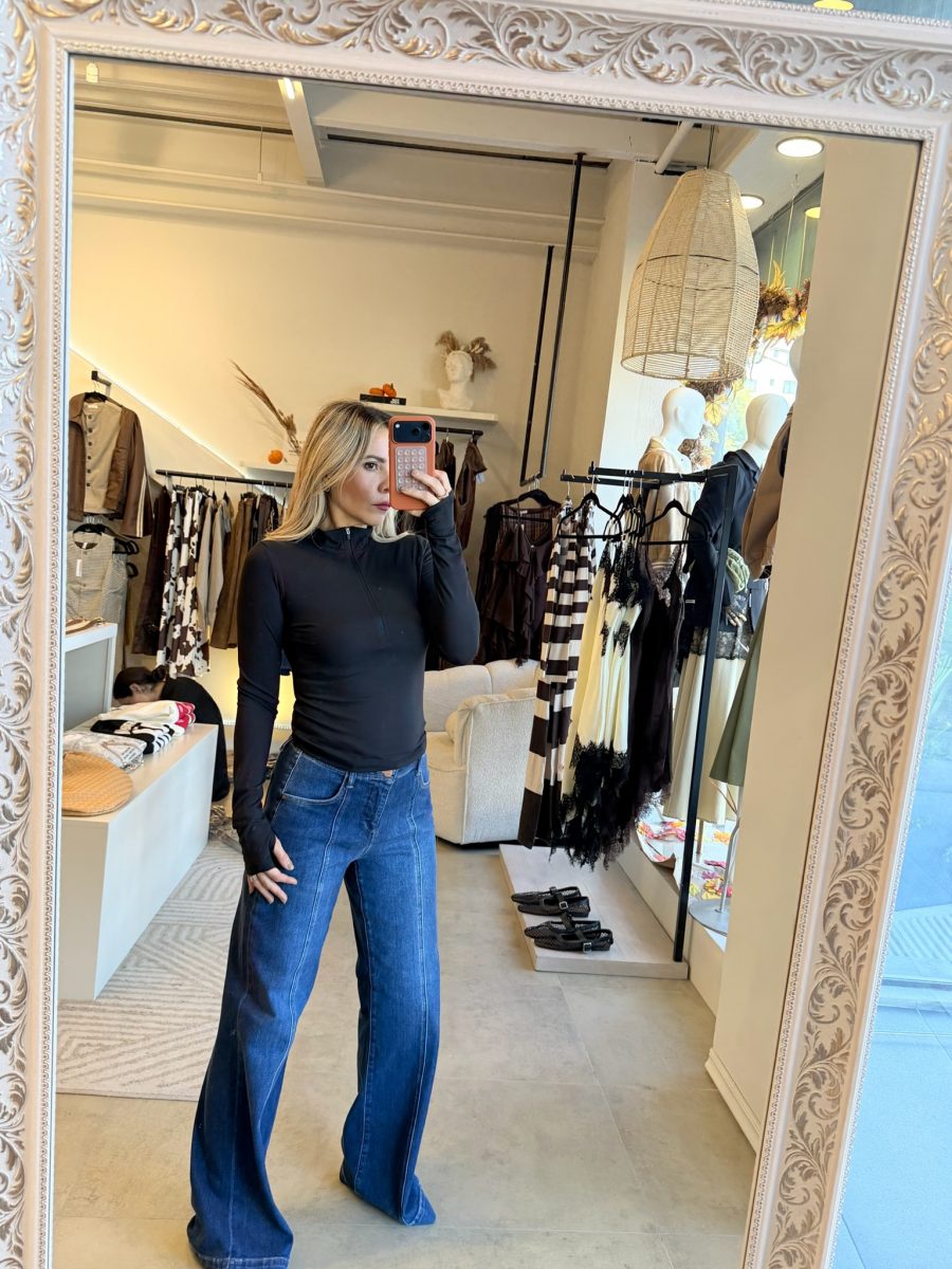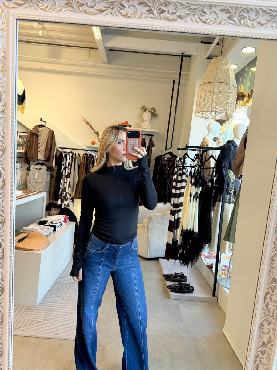 Blusa manga larga tela algodón stretch color negro estilo deportivo