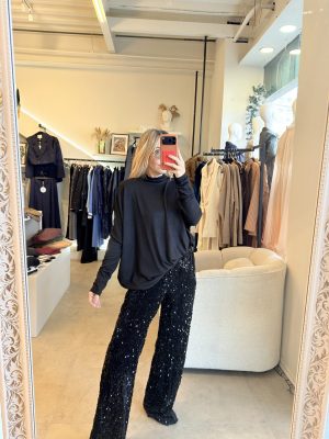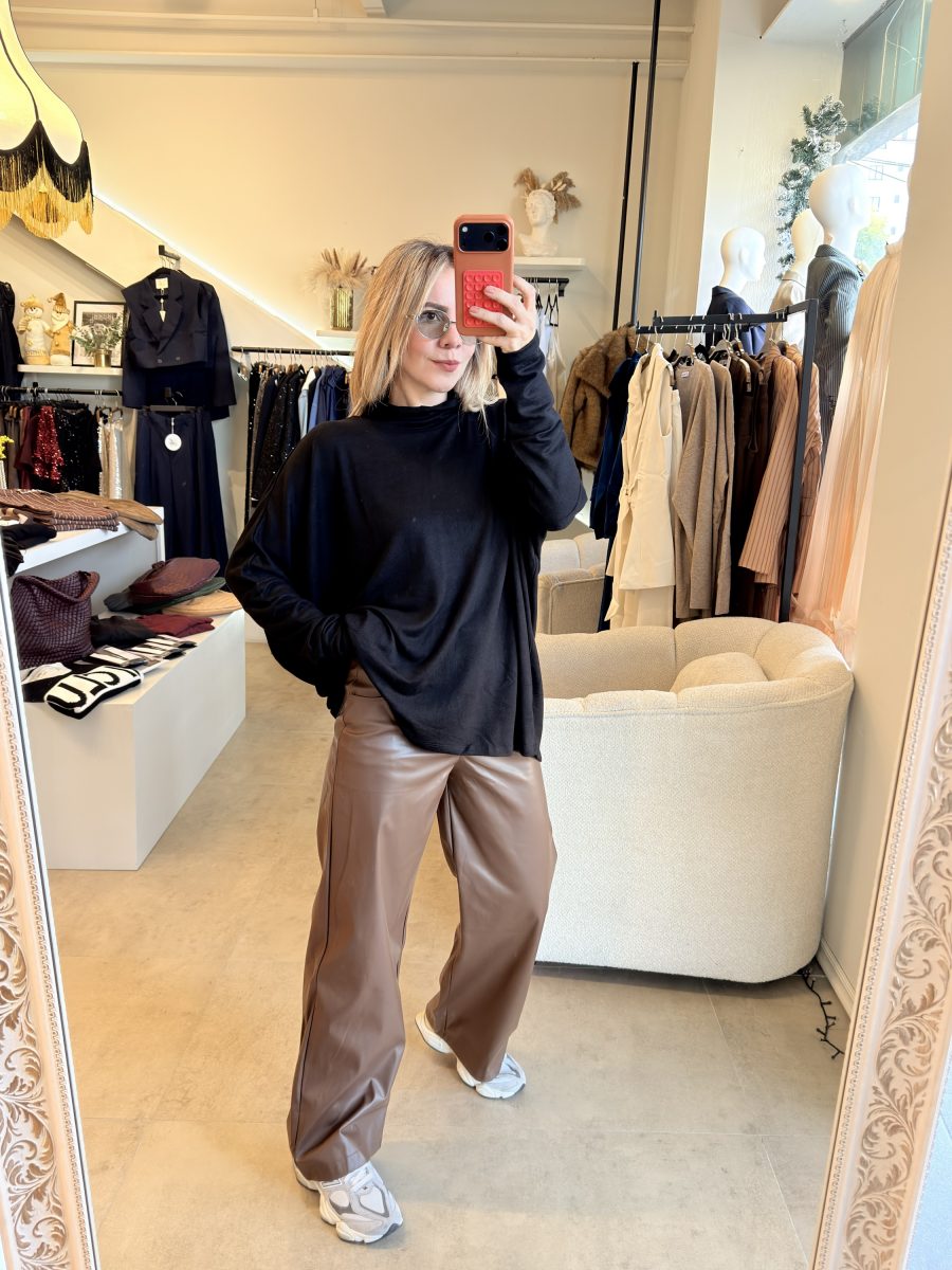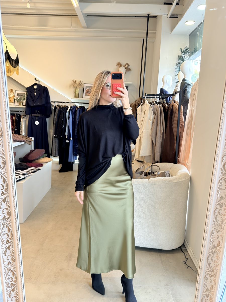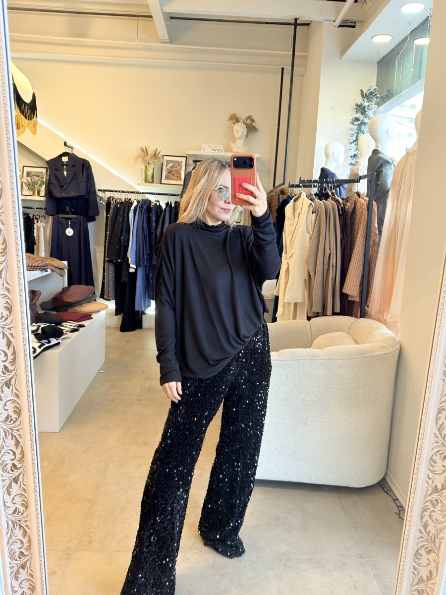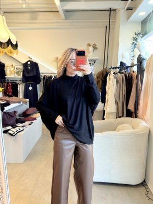 Blusa de algodón color negro con cuello alto