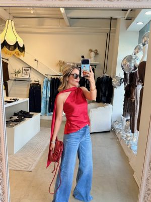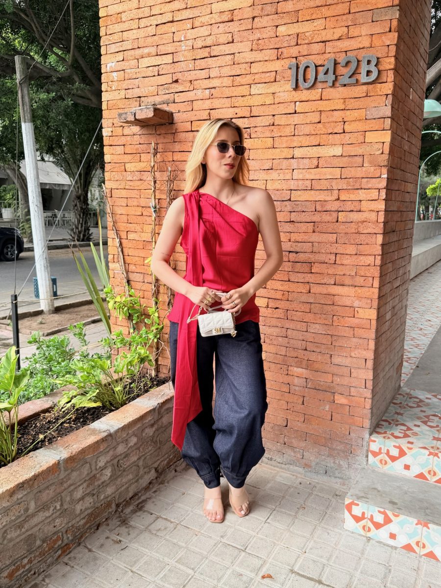 Blusa roja con lazo para cuello