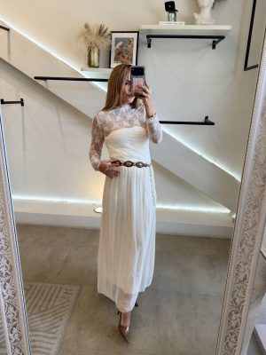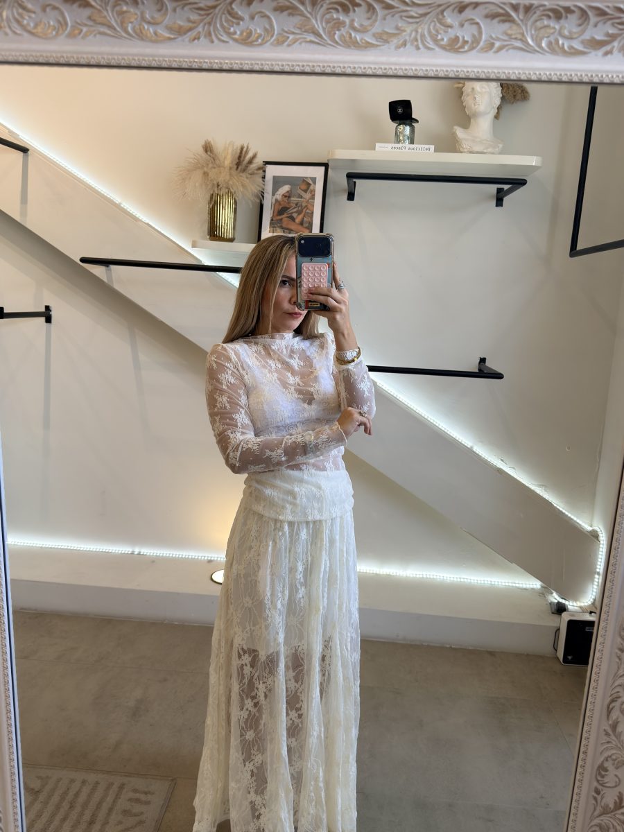 Blusa mesh de encaje tendencia color ivory white