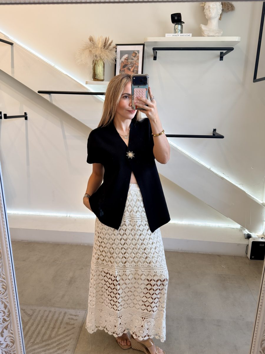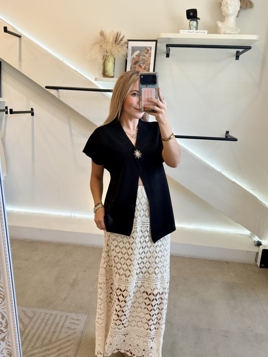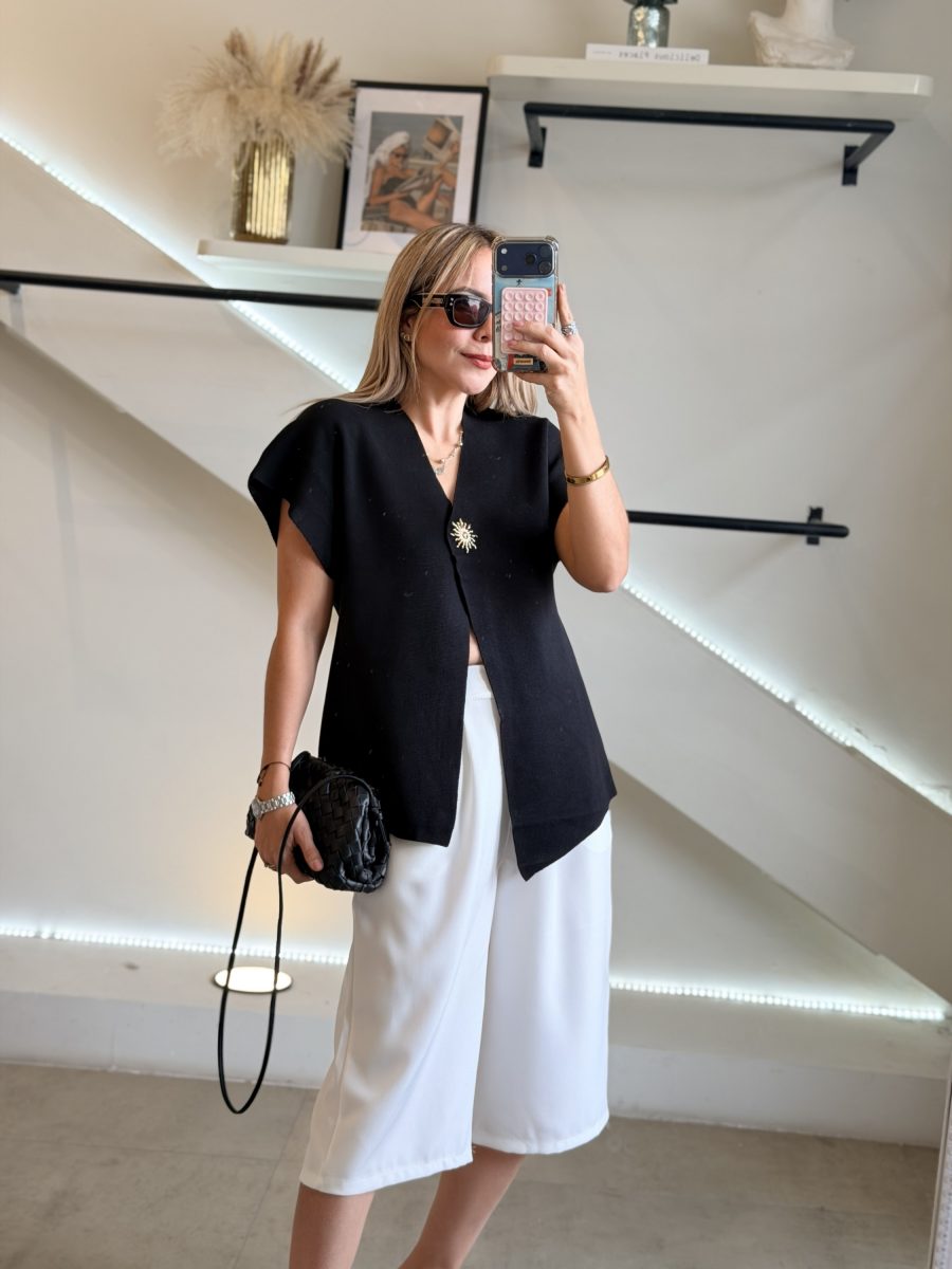 Blusa estilo chaleco de punto con diseño de sol en botón