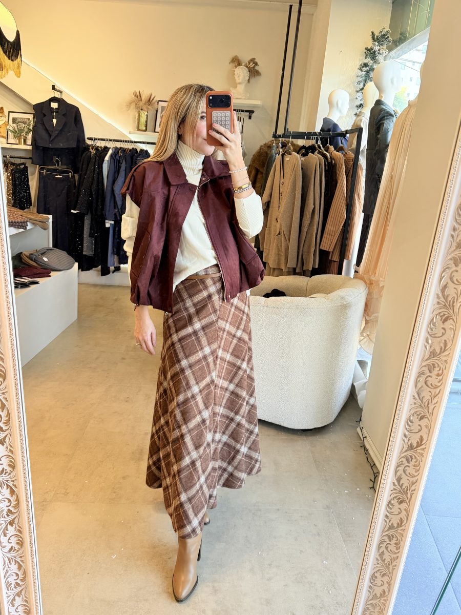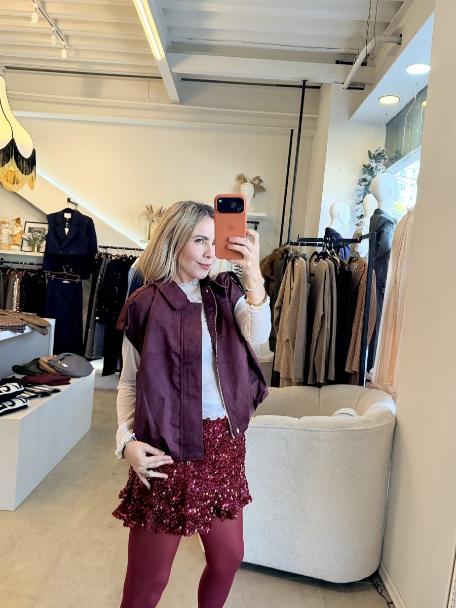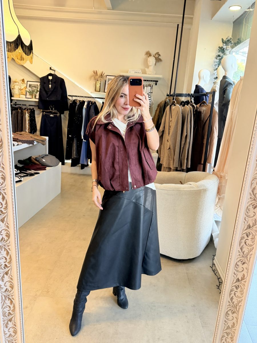 Chaleco tipo bomber con cierre tela gamuza color burgundy