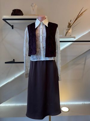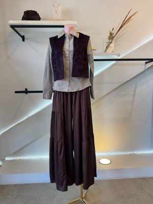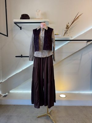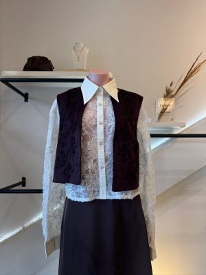 Chaleco corto con aplicaciones color burgundy tela tipo gamuza