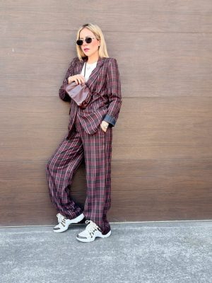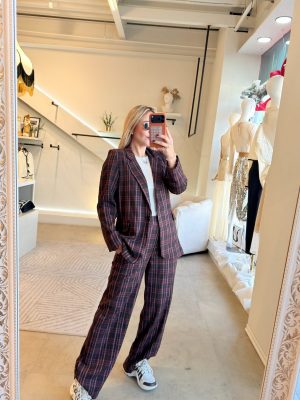 Conjunto cuadros burgundy con blazer y pantalones formal ( resorte en cintura)