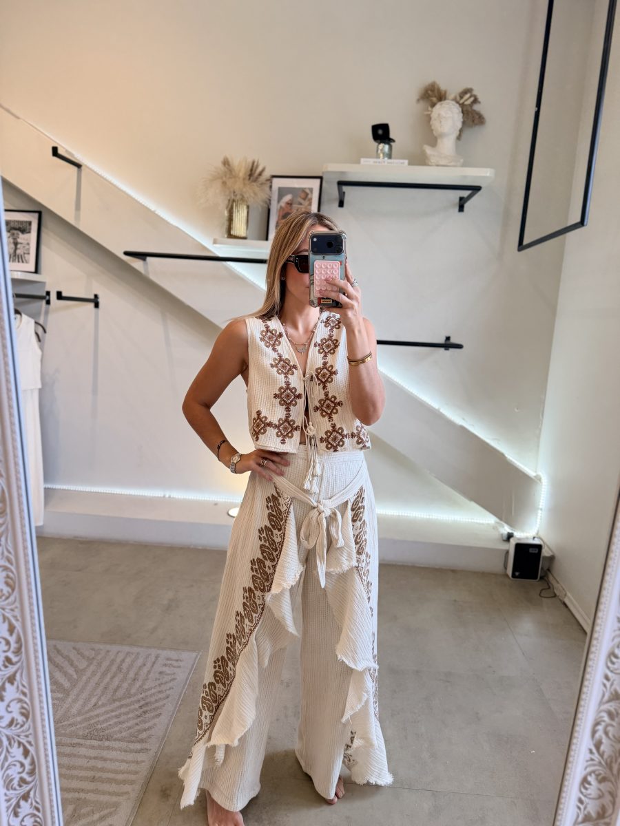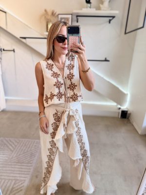 Conjunto hindú color Ivory de pantalón tendencia y blusa