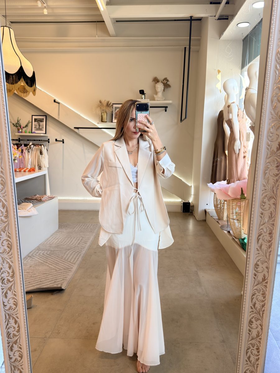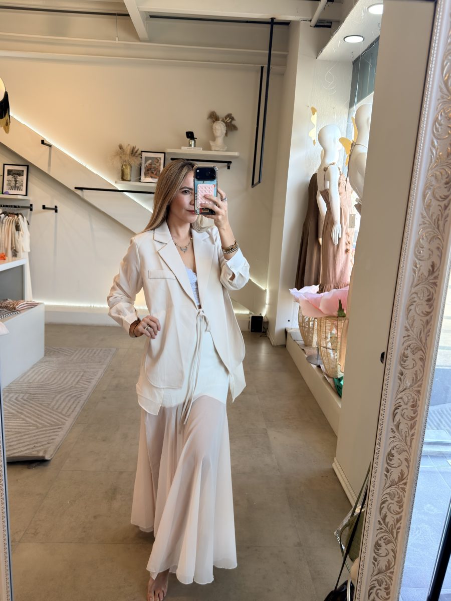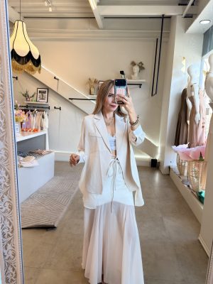 Conjunto ivory de blazer tendencia y falda midi