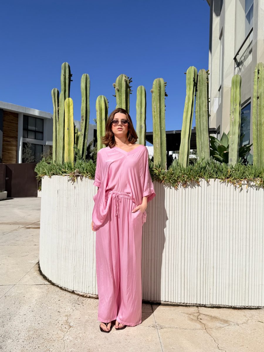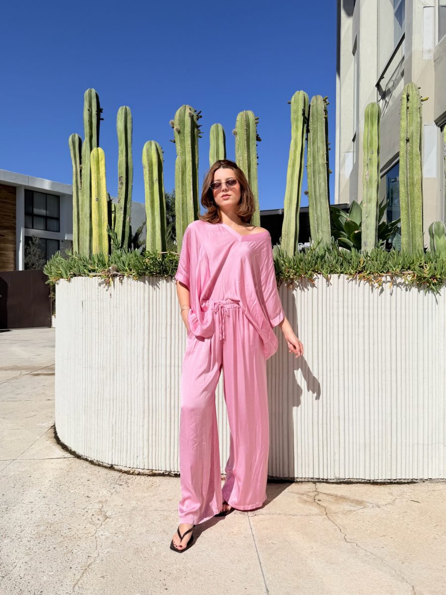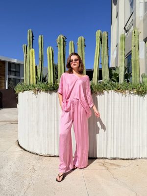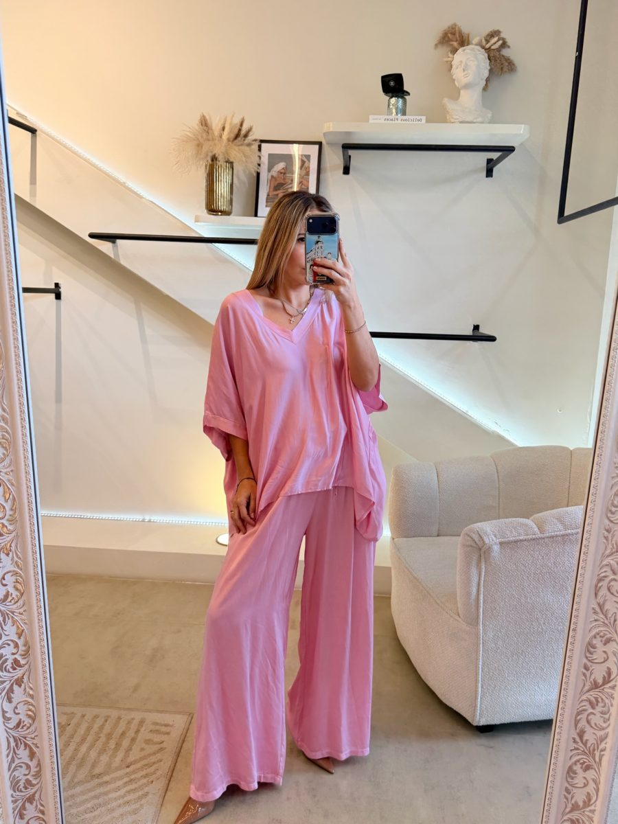 Conjunto color rosa con pantalón ligero con resorte en cintura