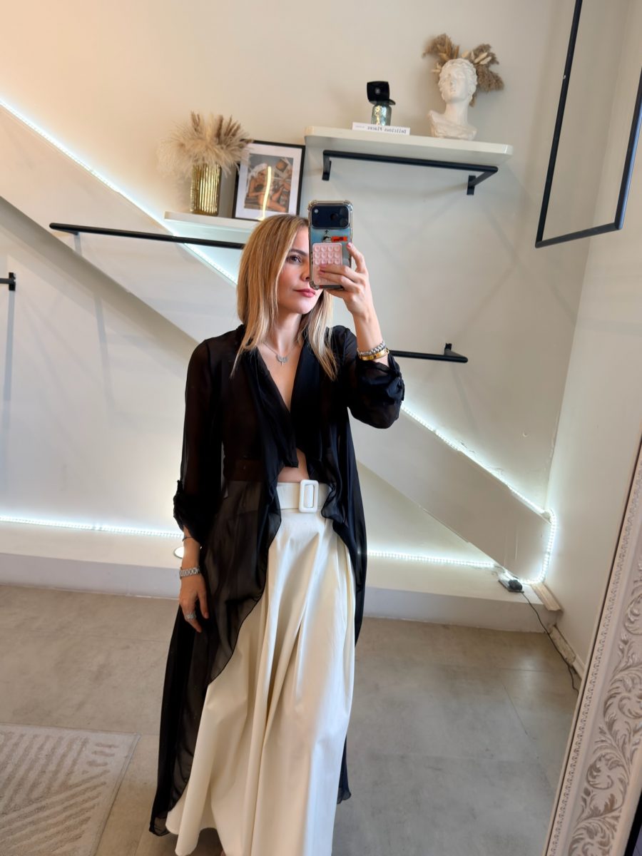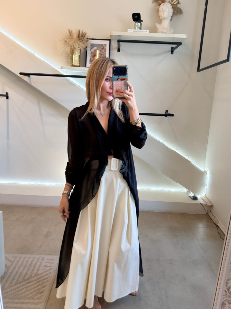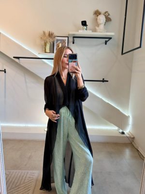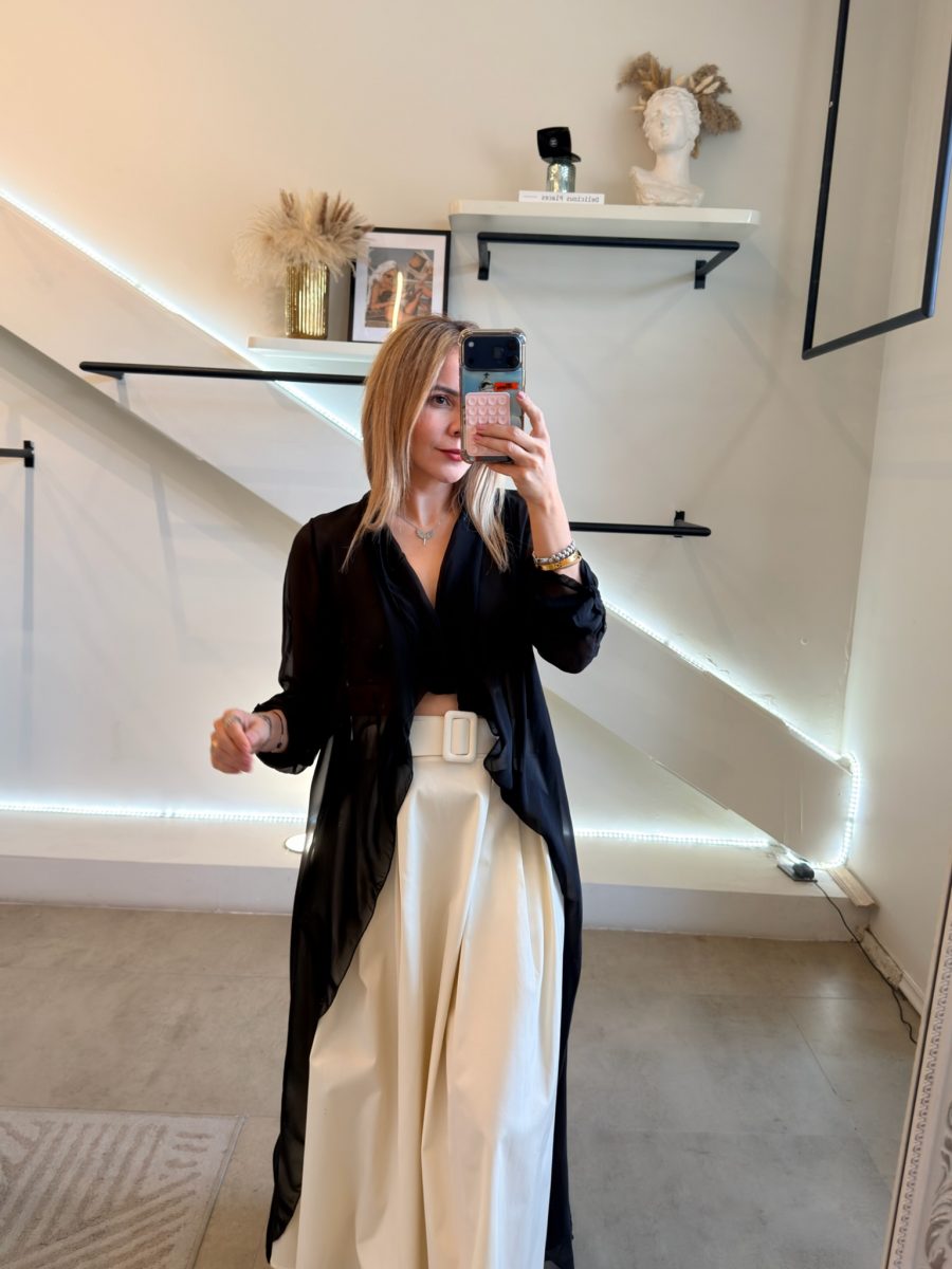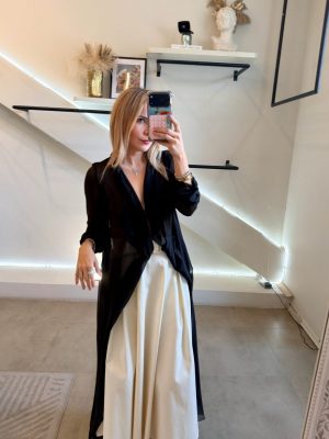 Ensamble manga larga tela de seda italiana color negro