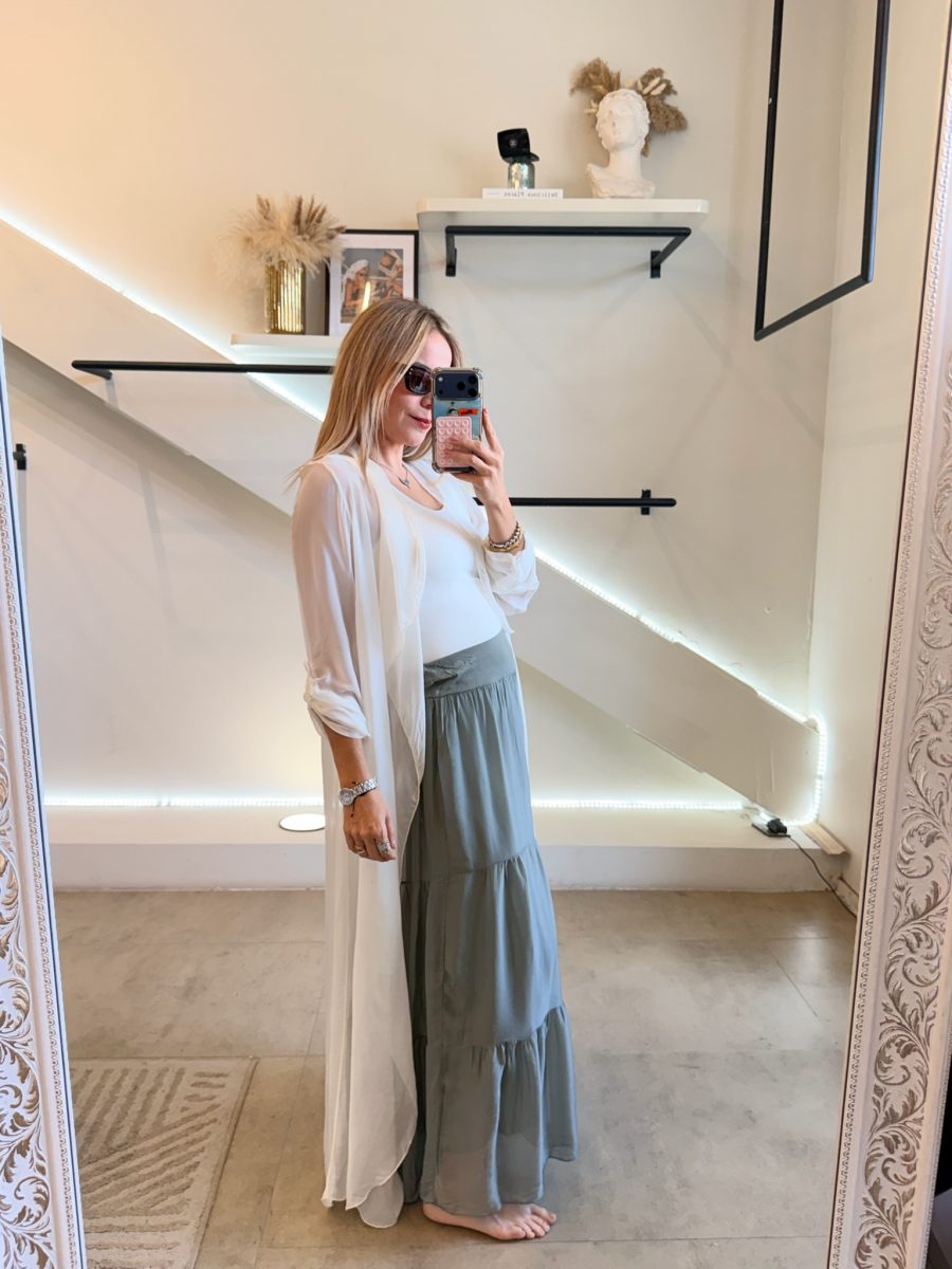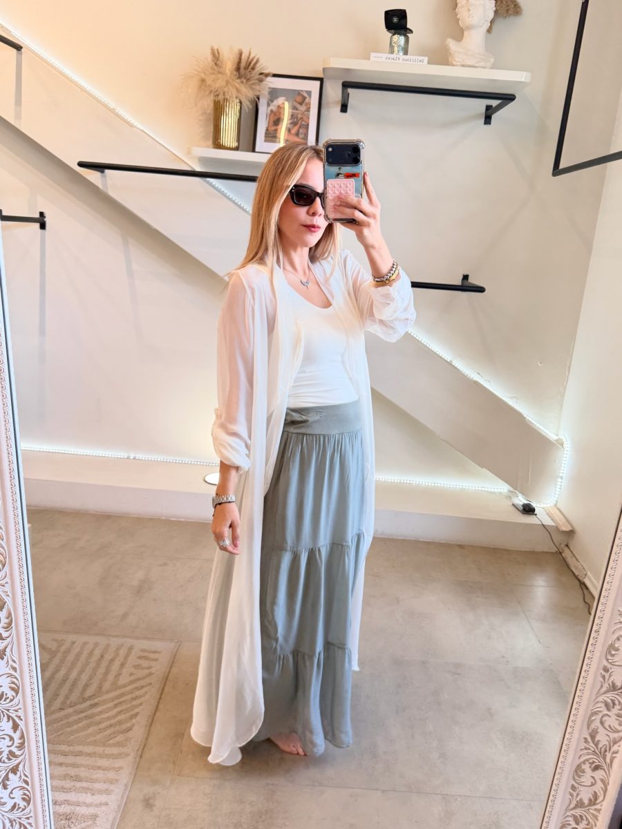 Ensamble manga larga tela de seda italiana color beige
