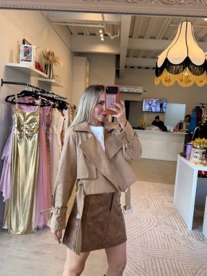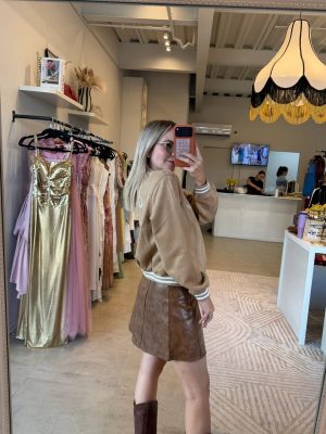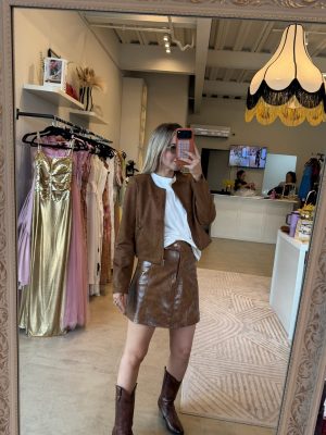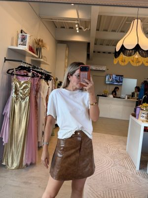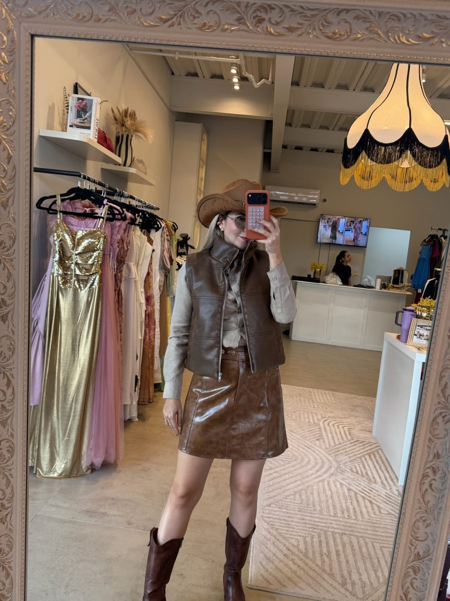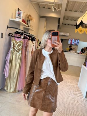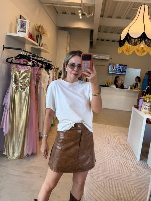 Falda con botones en la parte de enfrente color café tela vinipiel