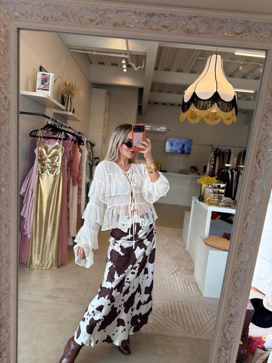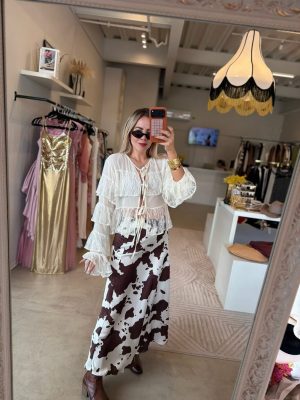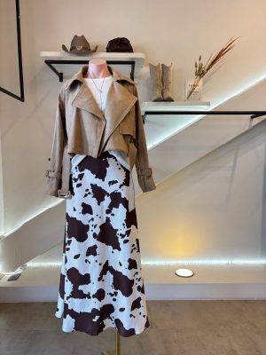 Falda midi con print de vaca vaca en tendencia con resorte en cintura