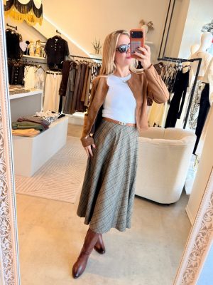 Falda midi Unitalla con cuadros color verde militar elástico en cintura