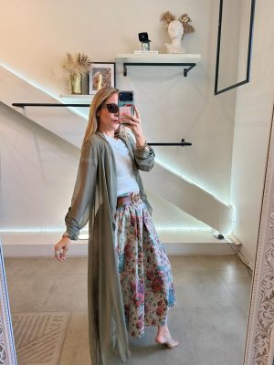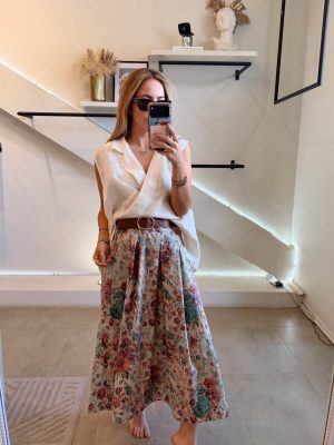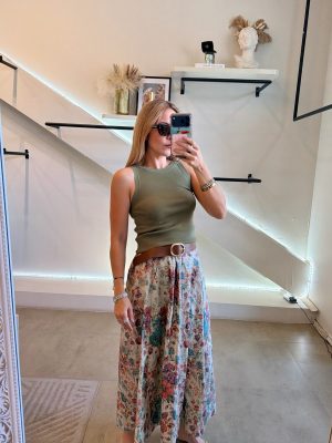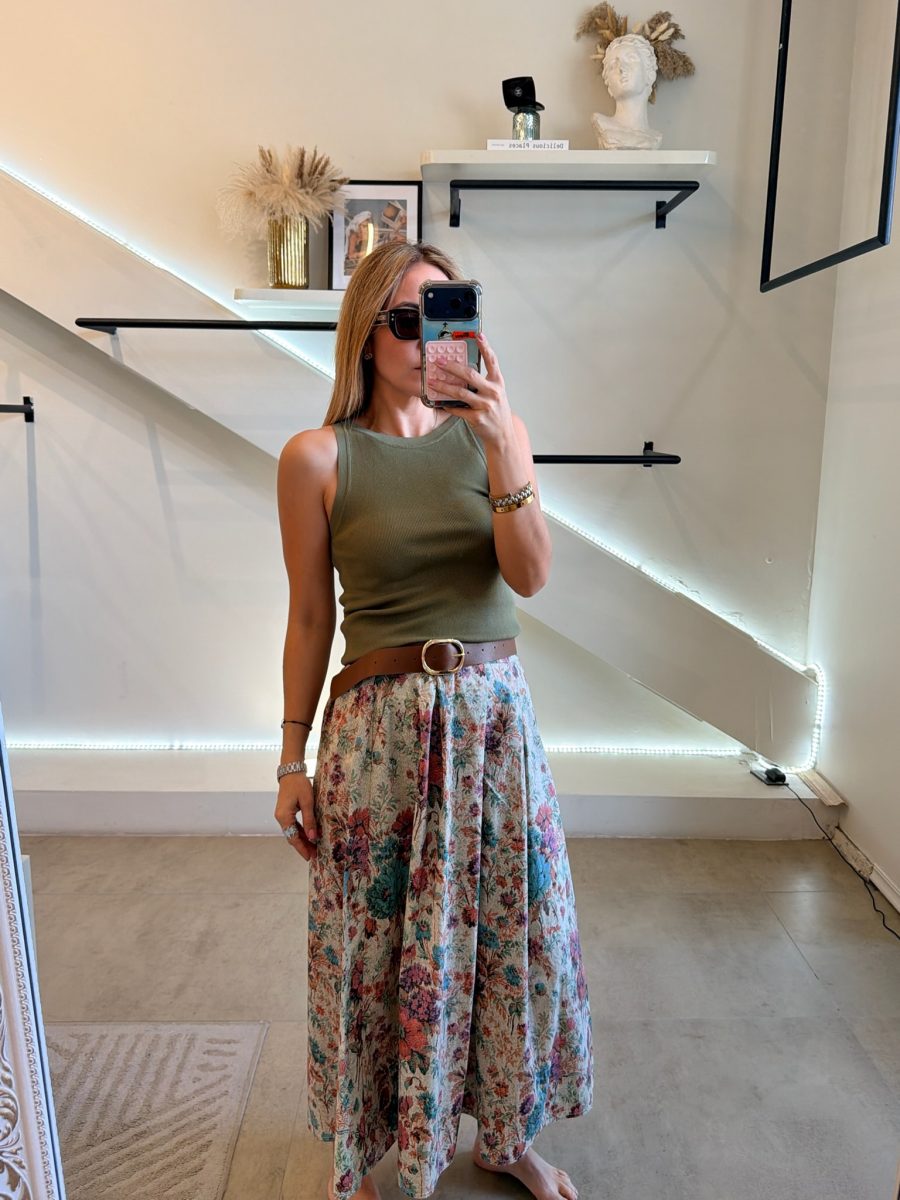 Falda midi estampado de flores con cinturón