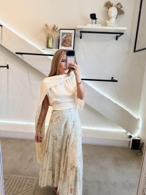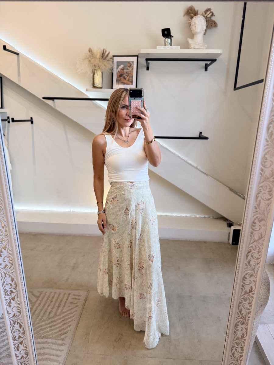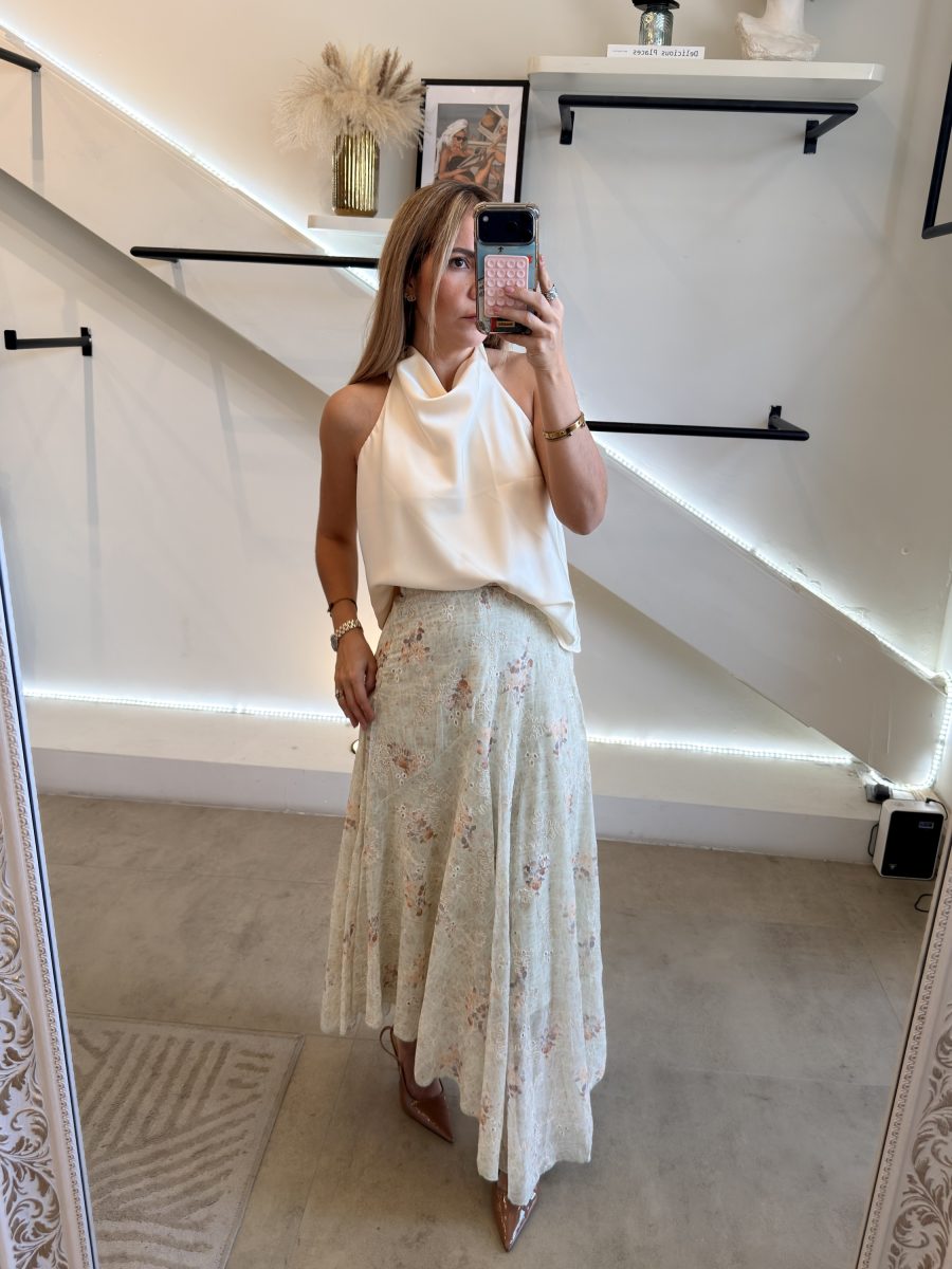 Falda midi green con diseño efecto encaje y diseño de colores pasteles