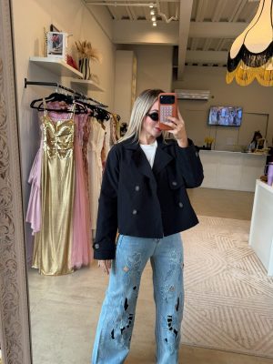 Jeans corte A con diseño de flores y aplicaciones
