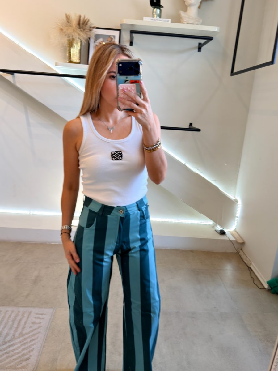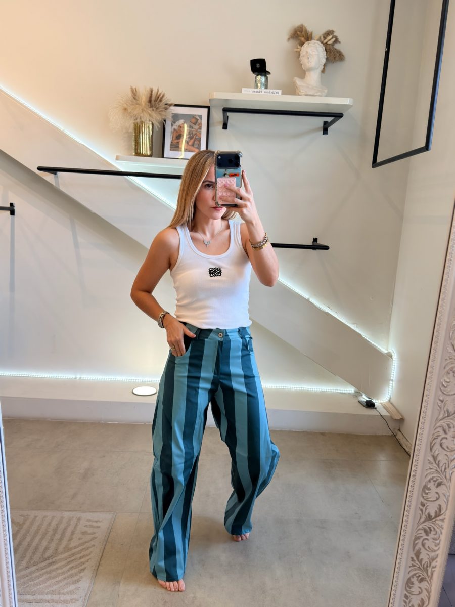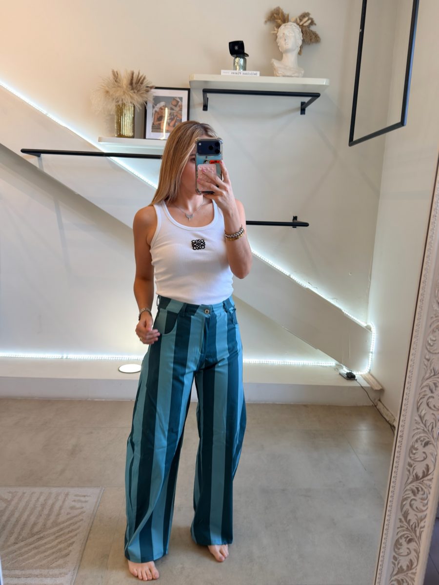 Pantalón estilo barrel tela de algodón color Azul estampado de jade