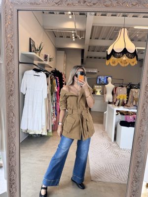 Pantalón tela de mezclilla stretch corte recto bolsas al frente y atrás