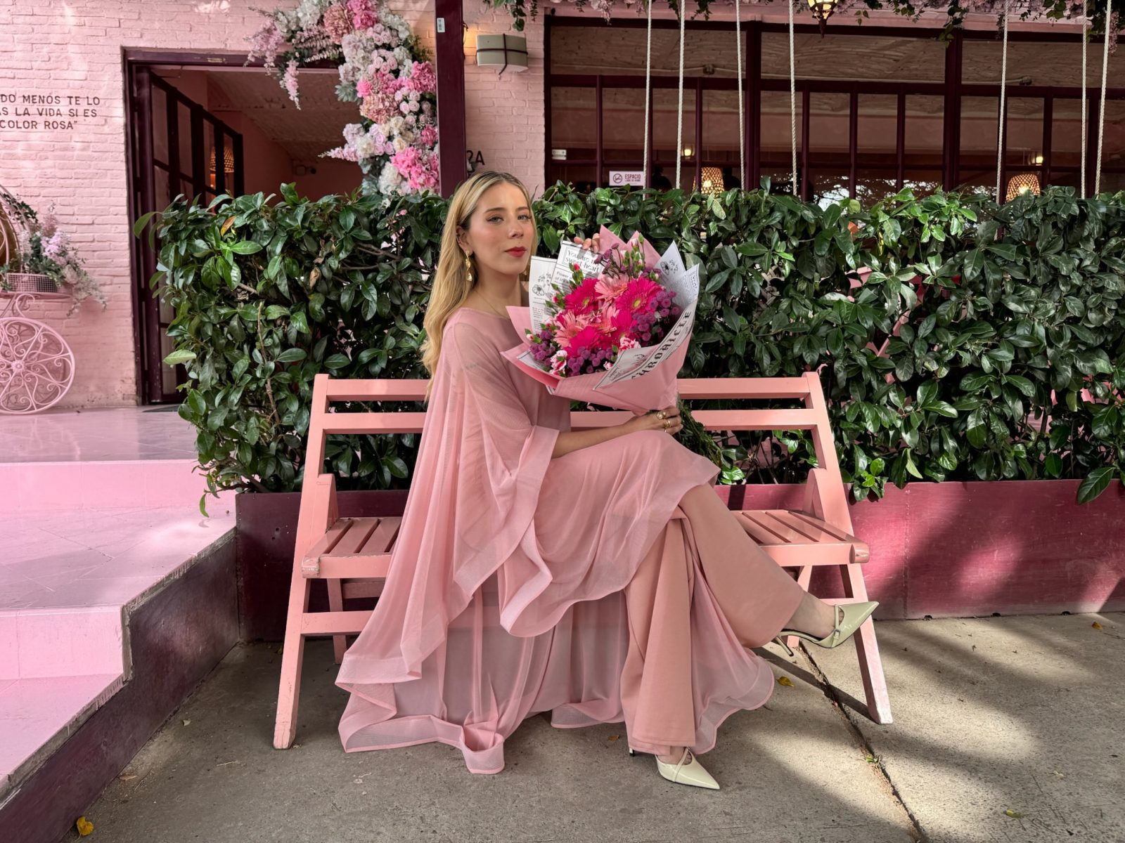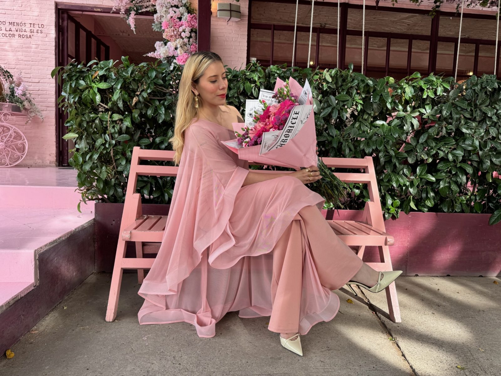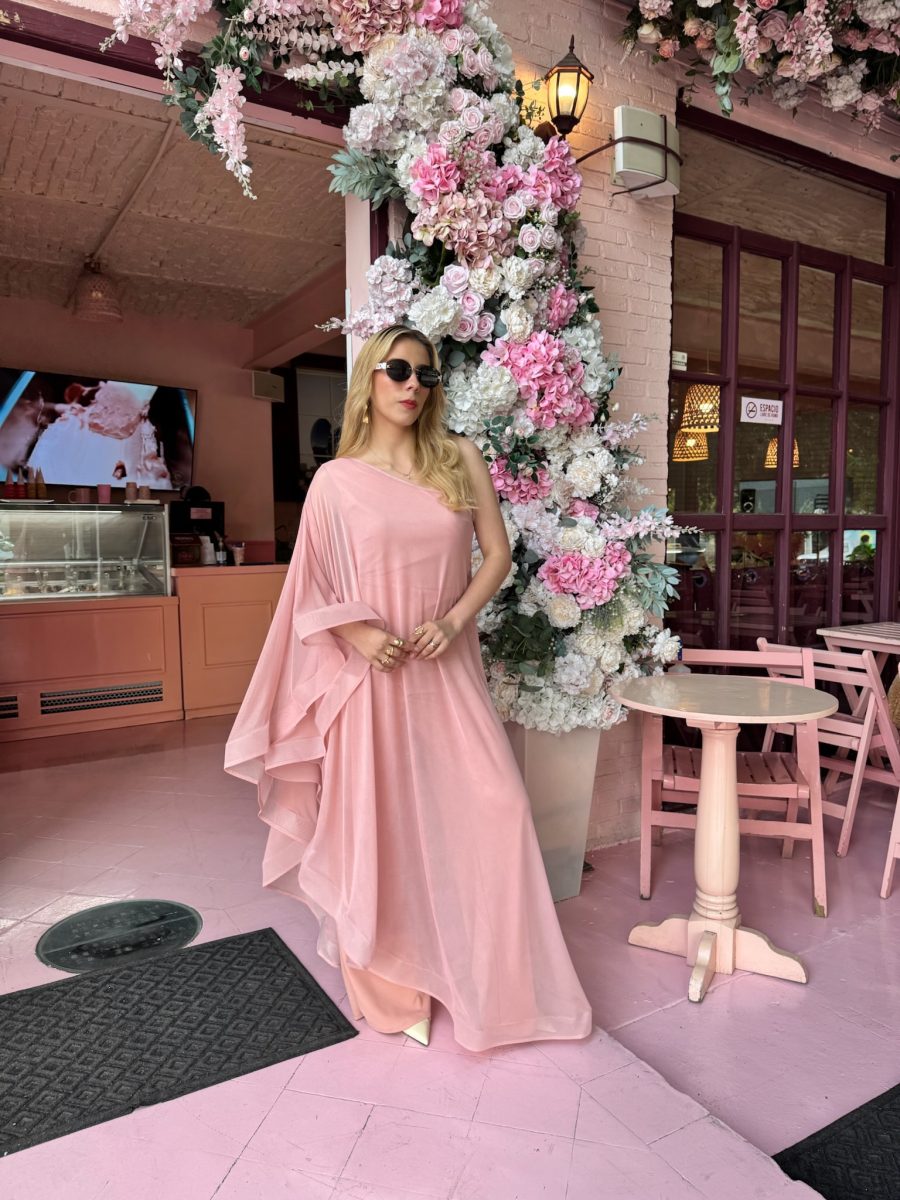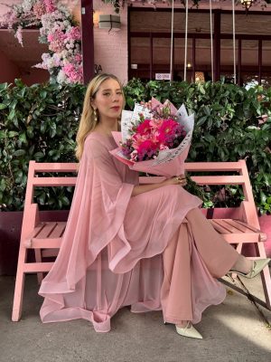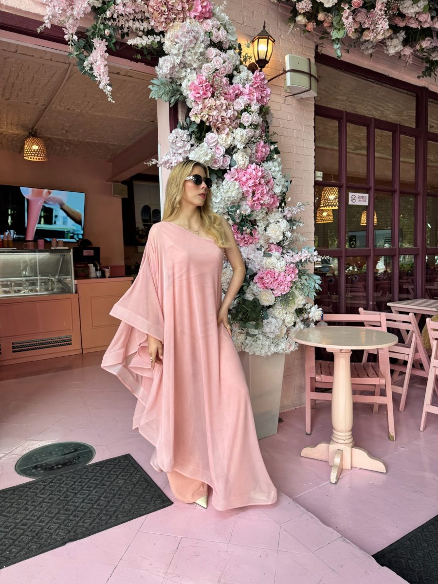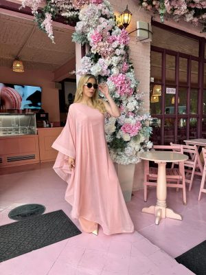 Palazzo mesh color rosa con Olanes