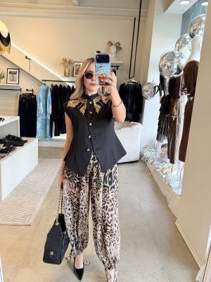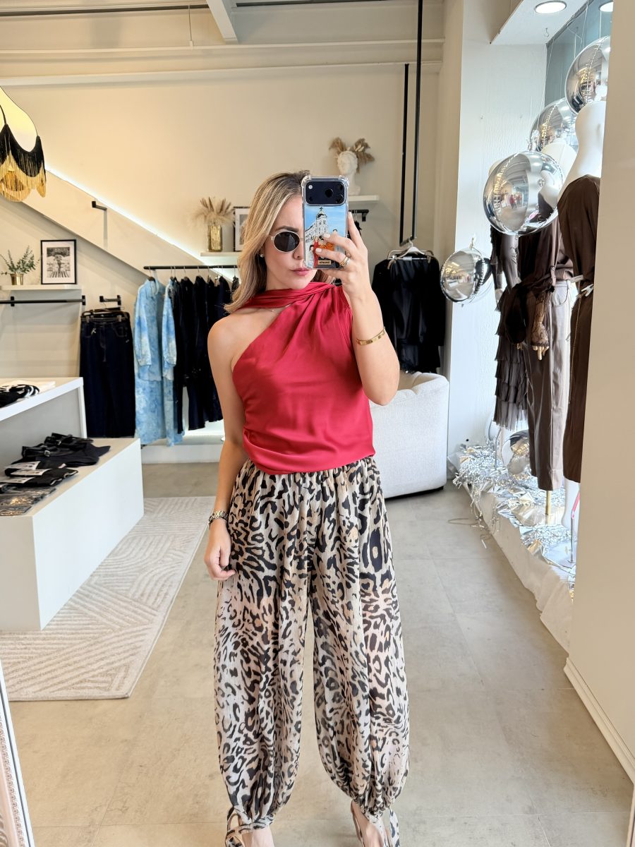 Pantalón estilo globo con diseño de Animal print y resorte en cintura