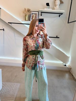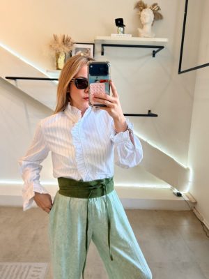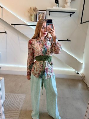 Pantalón básico tela de algodón color menta degradado
