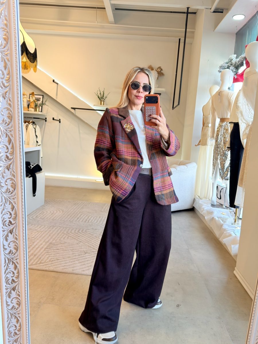 Pantalón color burgundy tela tejido flexible y suave al tacto , bolsas a los lados