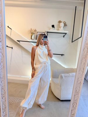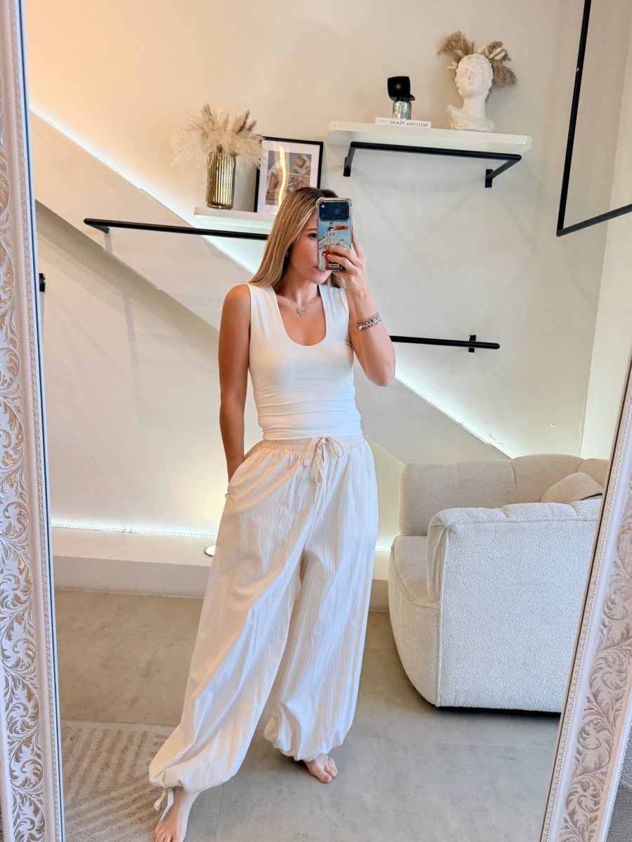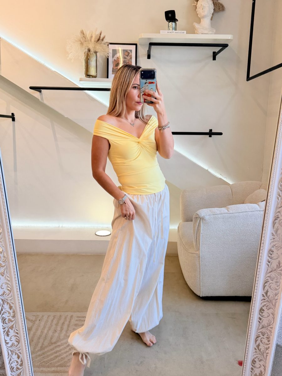 Pantalón globo con diseño de lunas amarillas y resorte en cintura