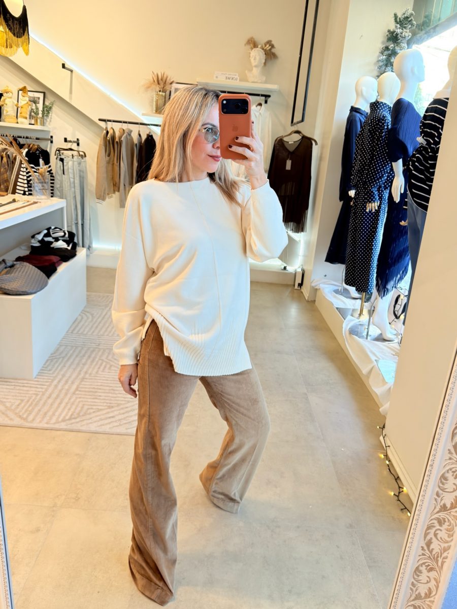 Pantalón tela de pana color cafe con botón y cierre