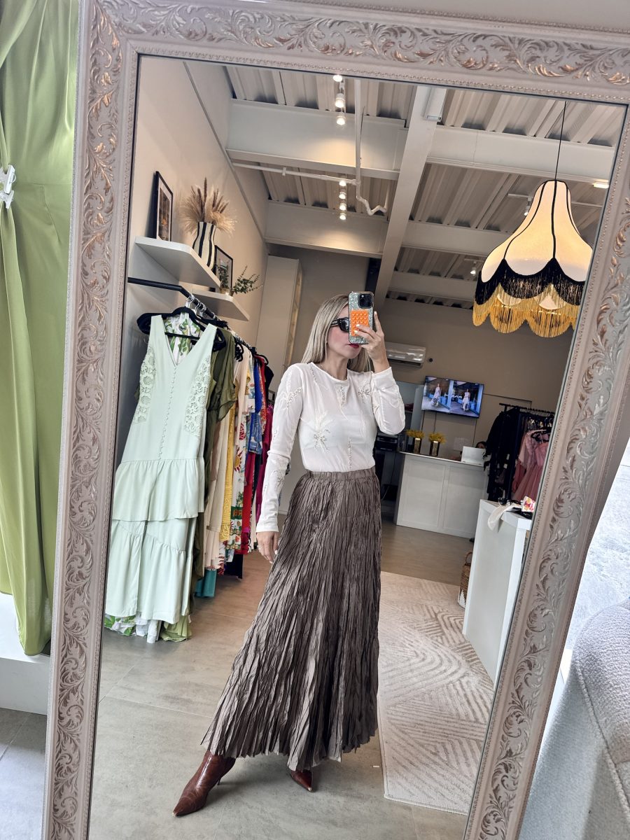 Pantiblusa manga larga tela mesh stretch con aplicaciones bordadas y lentejuela