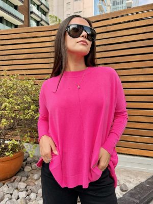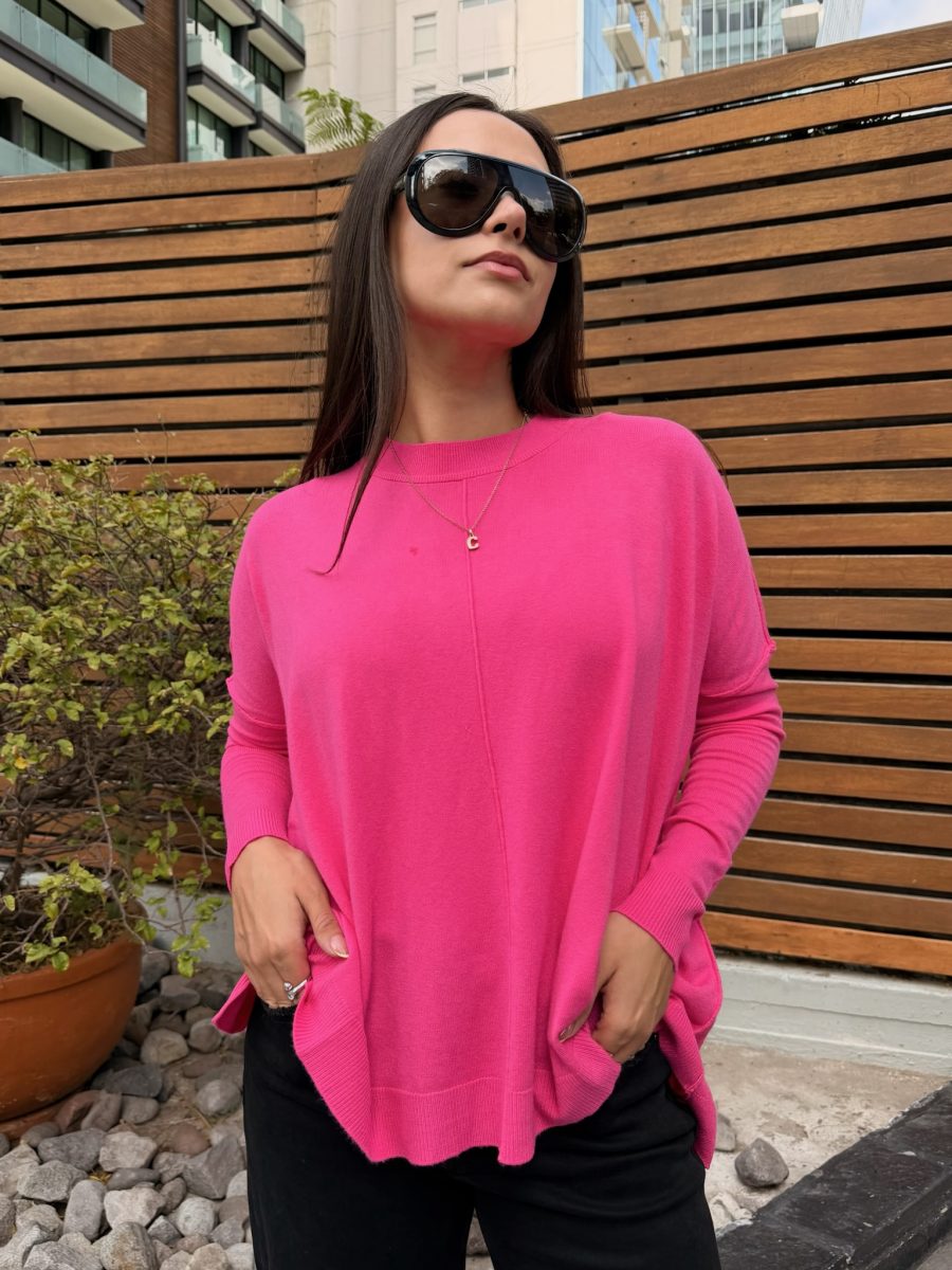 Suéter básico Oversize color rosa, manga larga y tela delgada