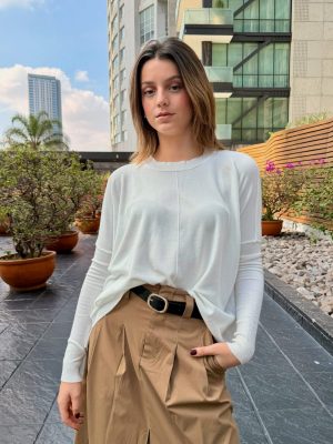 Suéter básico Oversize color Blanca, manga larga y tela delgada