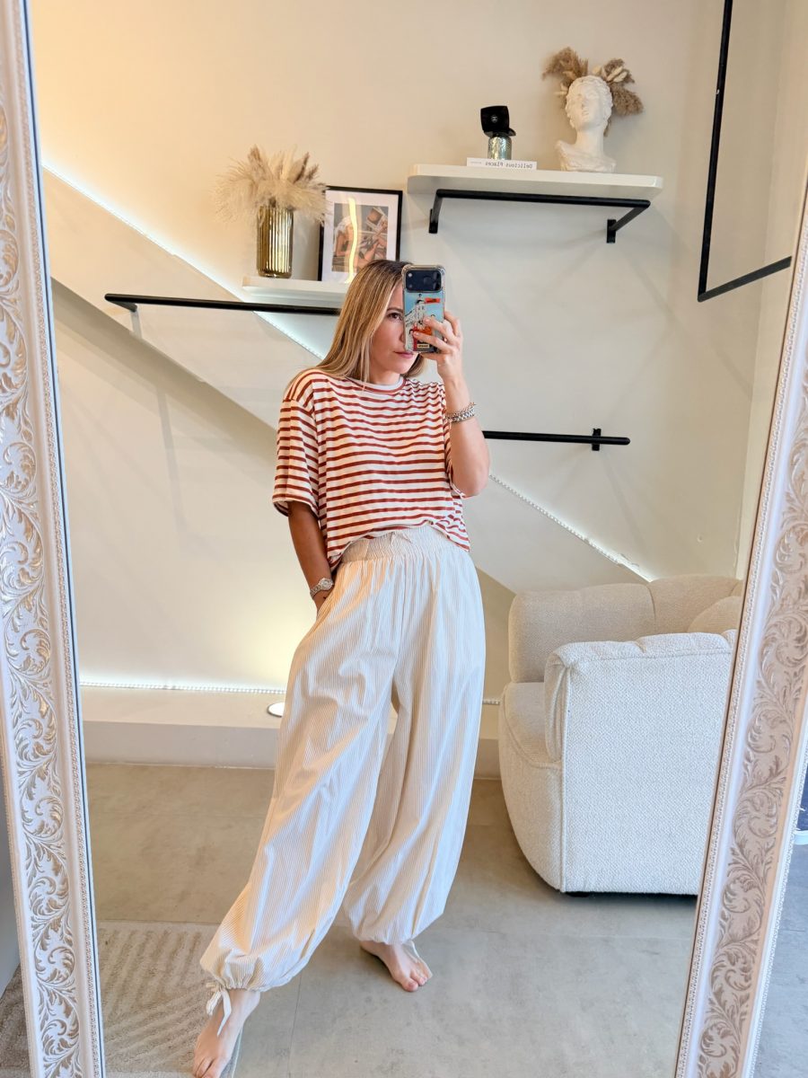 Tshirt de rayas color terracota y Ivory