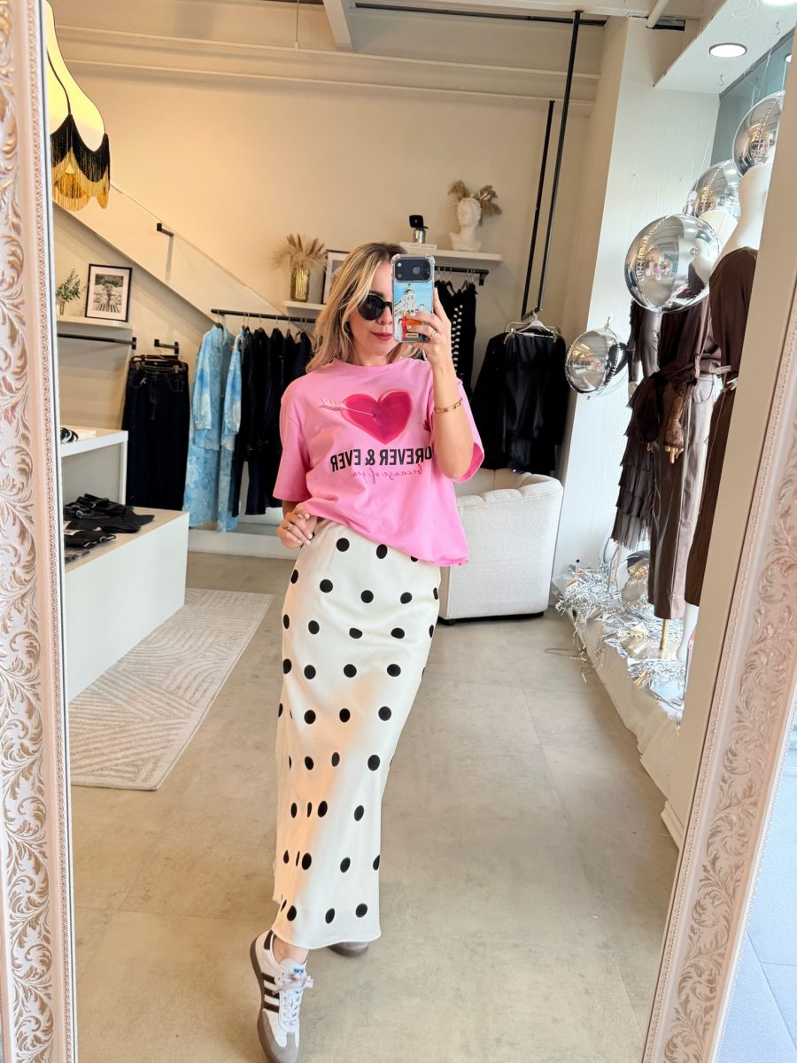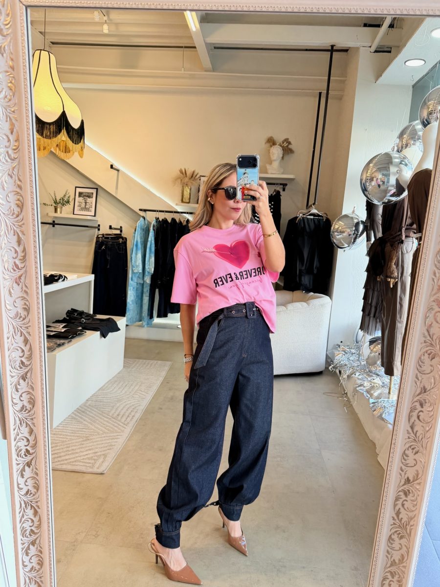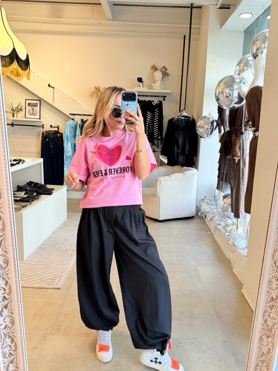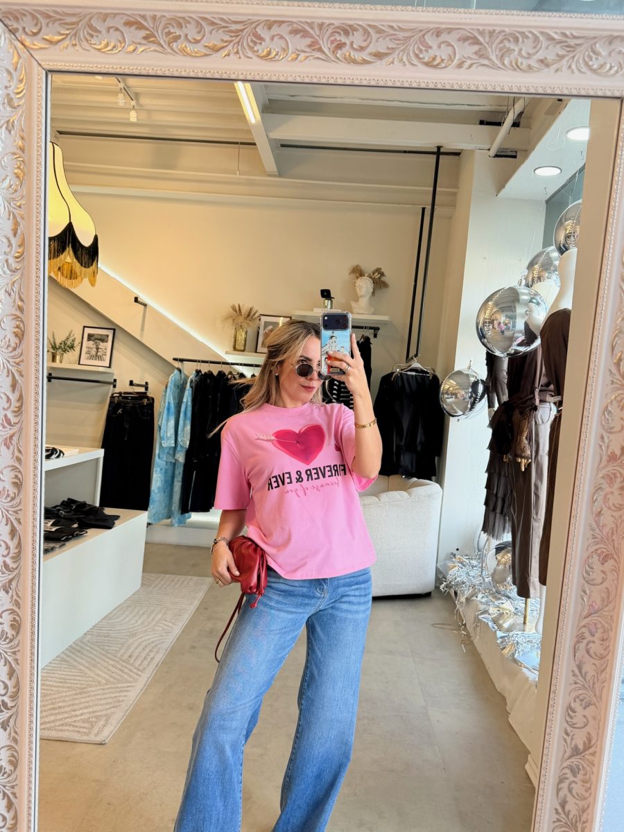 Playera básica color rosa con diseño de corazón