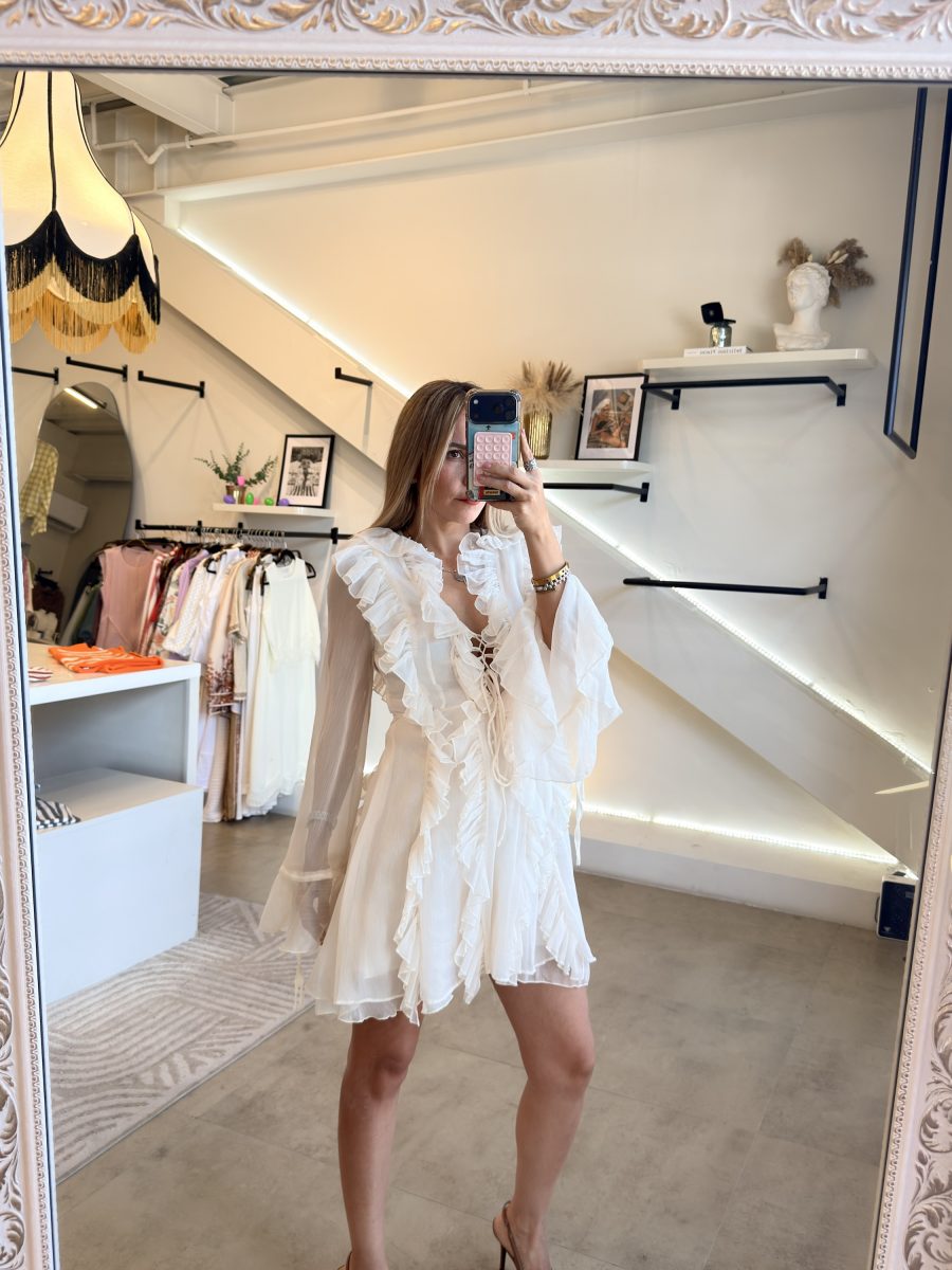 Vestido corto ivory estilo Boho con diseño de Olanes